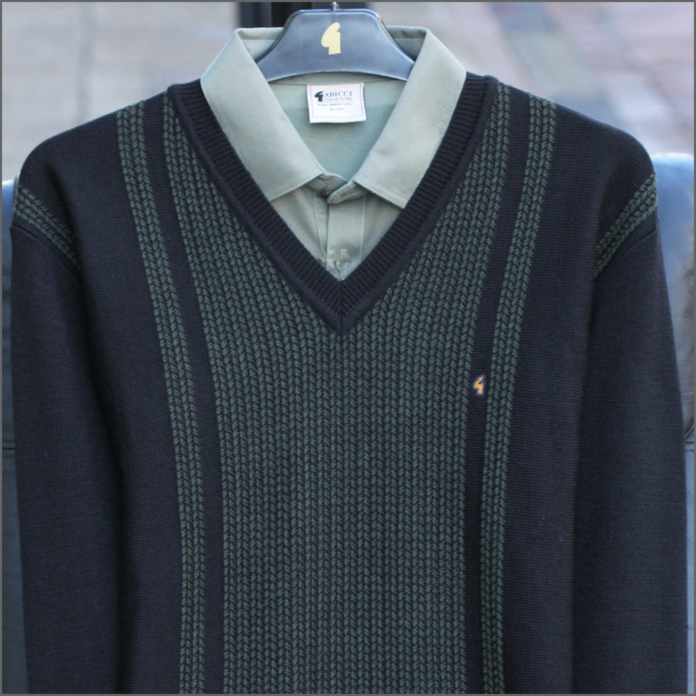 Stylish Black Patterned V Neck is a great addition to anyone's wardrobe and is one of the many choices of quality knitwear available in store and online. This Quality Neck V comes with a nice soft toning and can be worn with  various T Shirts. We would be happy to suggest a few options for you from our wide selection of Gabicci Tee Shirts. This year we have a wider than ever selection of quality V Necks. Made from 50% Wool and 50% Acrylic giving a hard wearing, machine washable, durable garment.