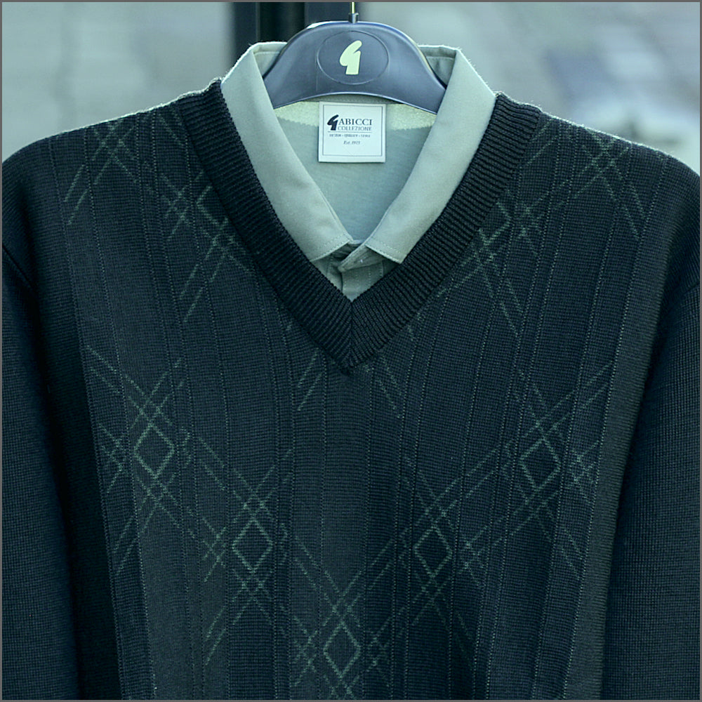Stylish Black Patterned V Neck is a great addition to anyone's wardrobe and is one of the many choices of quality knitwear available in store and online. This Quality Neck V comes with a nice soft toning and can be worn with various T Shirts. We would be happy to suggest a few options for you from our wide selection of Gabicci Tee Shirts. This year we have a wider than ever selection of quality V Necks. Made from 50% Wool and 50% Acrylic giving a hard wearing, machine washable, durable garment.