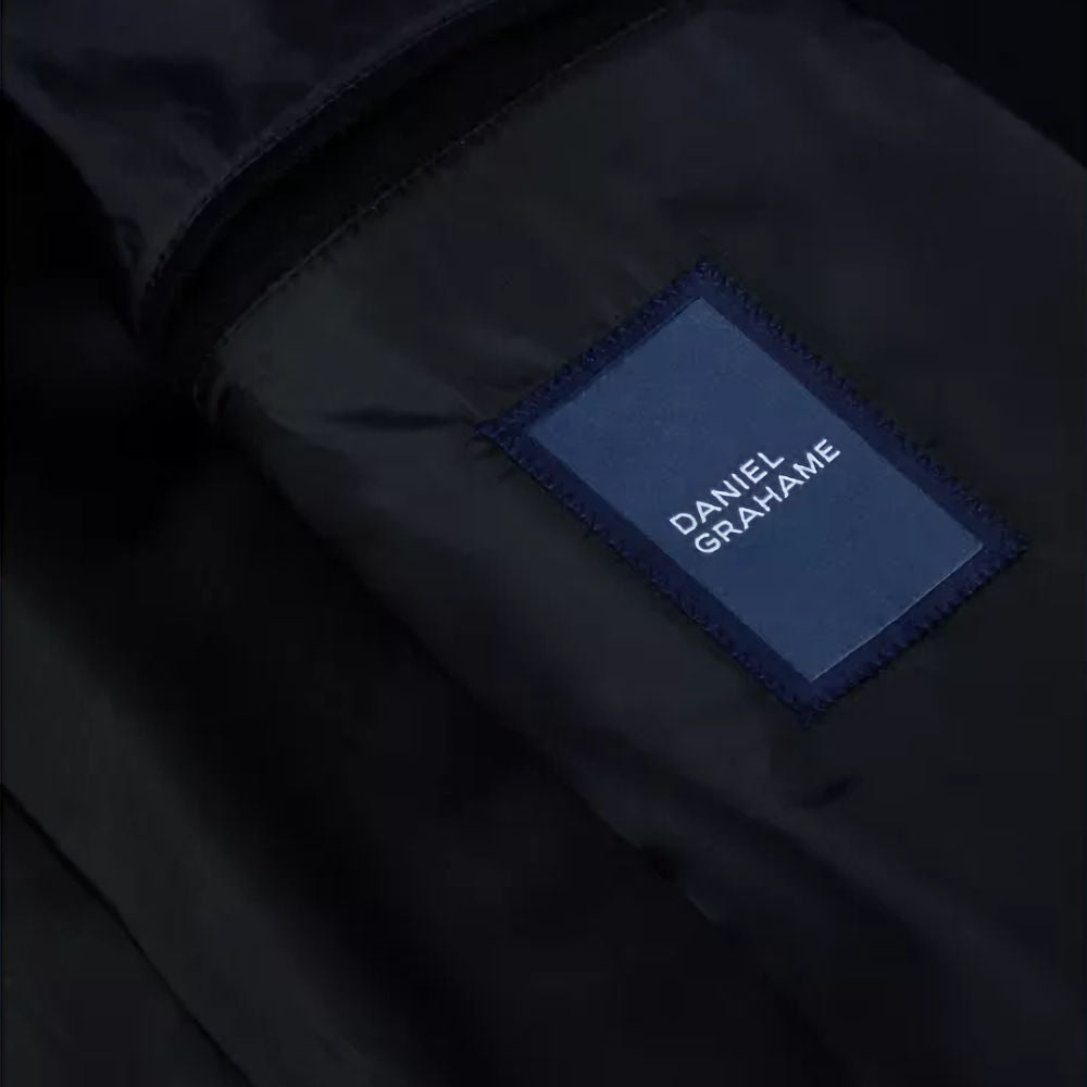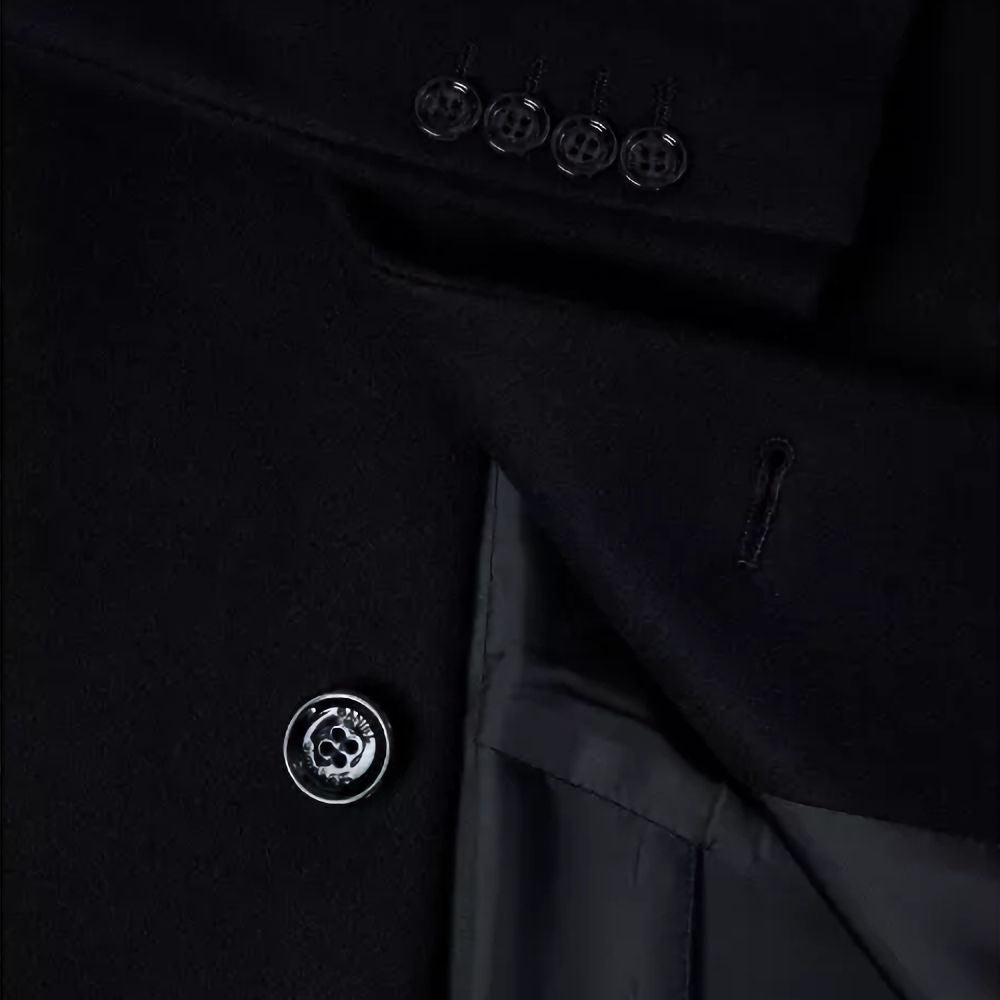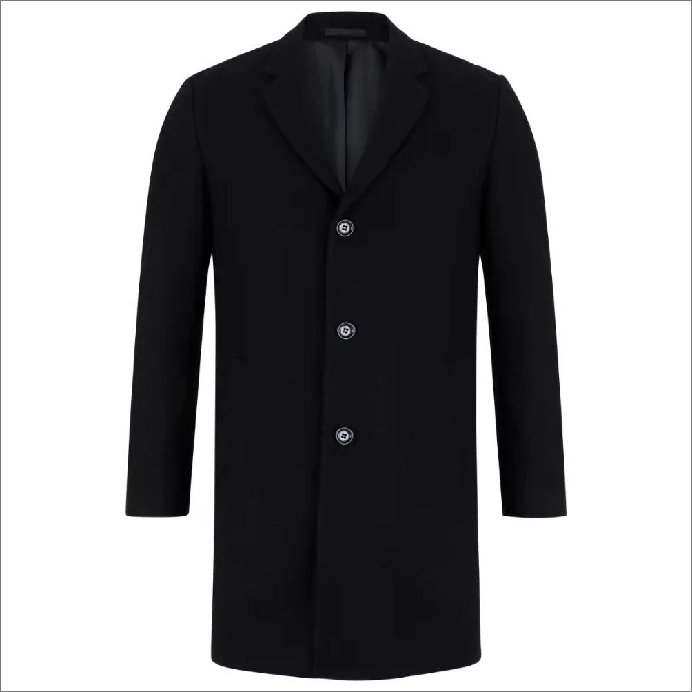 Danial Grahame Black  Wool - Blend quality overcoat 3 Button front with side pockets. 2 inside pockets with a quality lining.  4 button cuff.