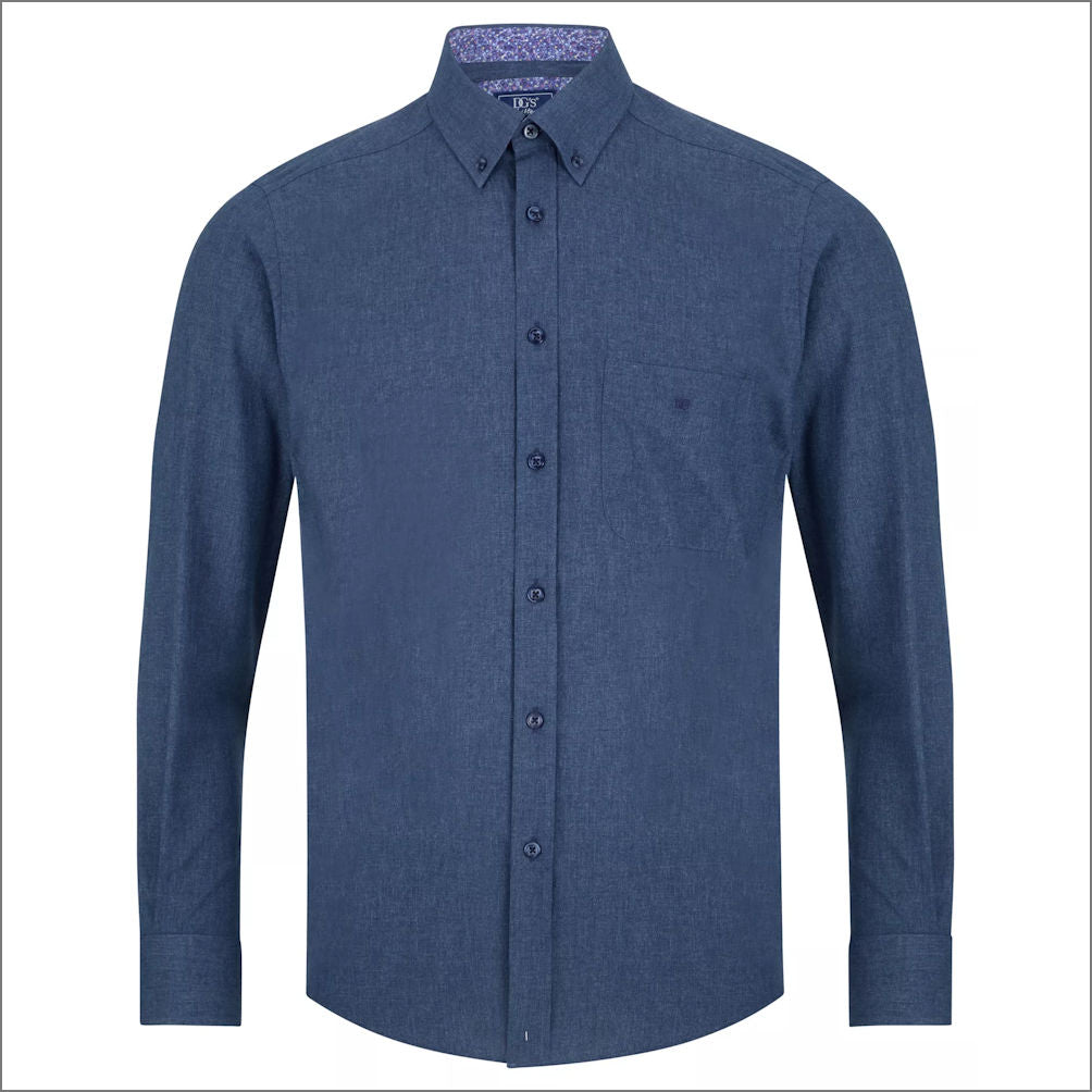 Dark Blue Woven Geneva cotton blend quality long Sleeve Shirt.   Button Down collar, Breast pocket, double button cuffs